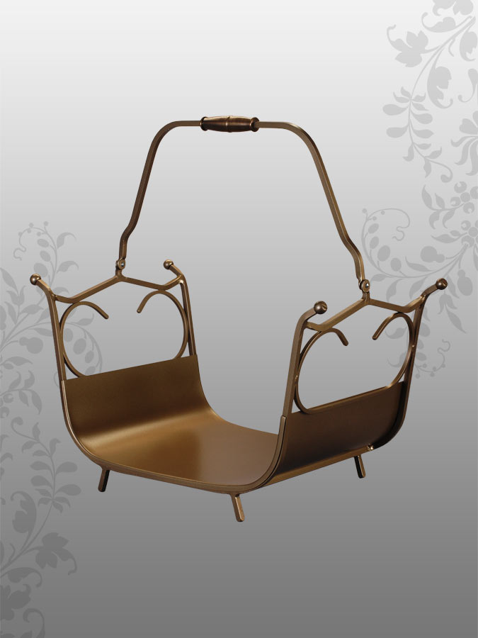 Stylowy i praktyczny kosz na drewno. Wykonany ze stali, malowanej proszkowo na kolor matowożółty. Uchwyt w tym samym kolorze.